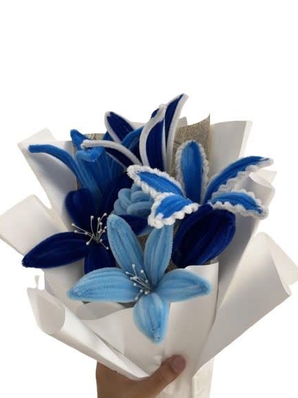 دسته گل لیلیوم سفید و آبی(5شاخه گل)