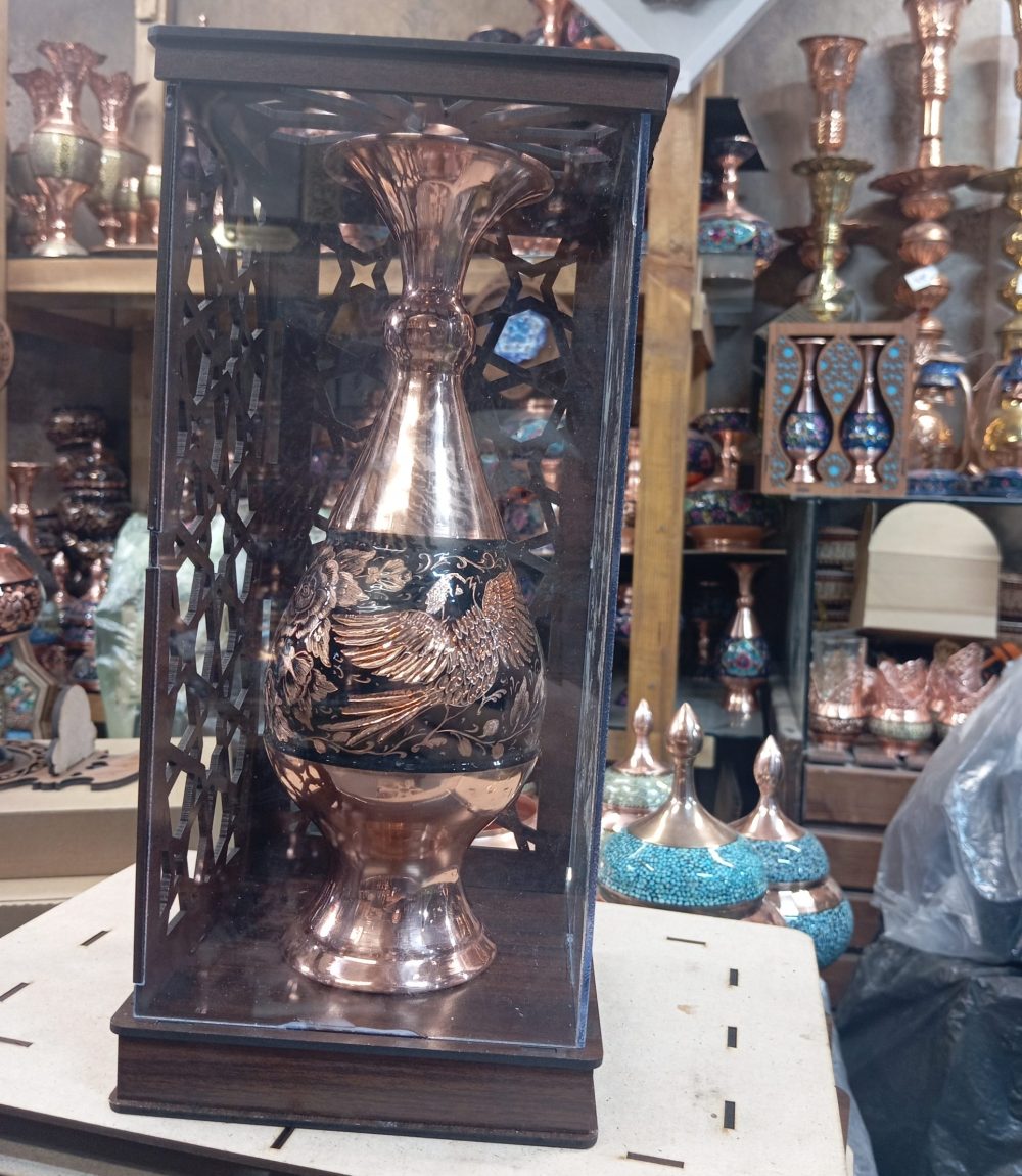 گلدان مسی الماس تراش طرح سیمرغ
