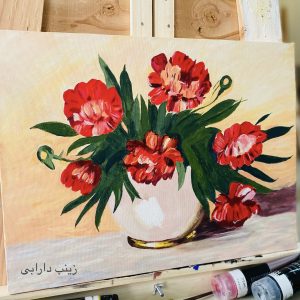 تابلو نقاشی گل و گلدان این نقاشی با اکرولیک طراحی شده و در مدت دو ماه زمان طراحی و اجرا